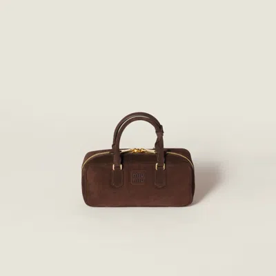 MIU MIU Arcadie Padded Suede Top-handle Bag In Brown