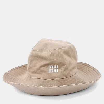 This beige hat from Miu Miu is designed for casual wear and light sun coverage. It features a clean shape with subtle branding and works well with everyday outfits.