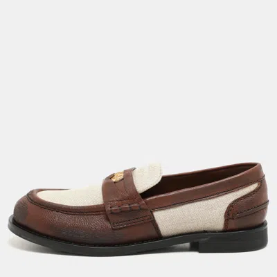Pre-owned Beige/brown Canvas And Leather Penny Loafers Size 37