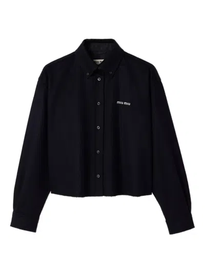 MIU MIU Boxy-fit Embroidered-logo Shirt In Black