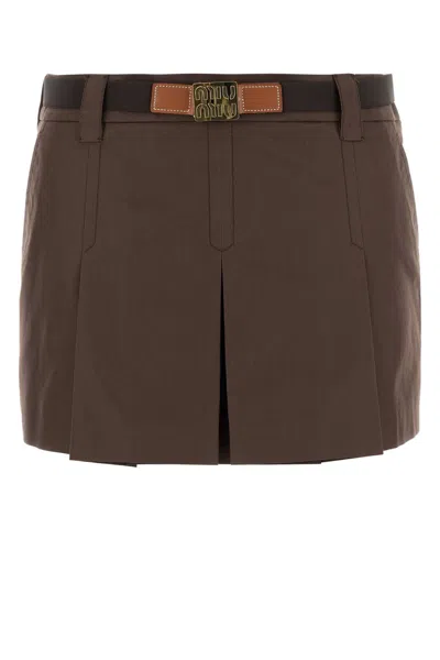 Brown Cotton Blend Mini Skirt from Miu Miu