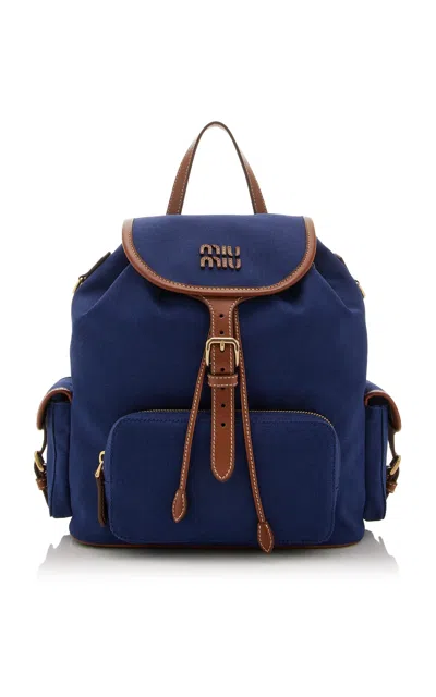 Miu Miu has served as Miuccia Prada's outlet to showcase her more playful side; without compromising elegance or style.Inspired by school gear; this leather-trimmed canvas backpack recalls childhood memories. Combining a refined yet functional aesthetic; it has a multi-pocket design with ample ways to wear.