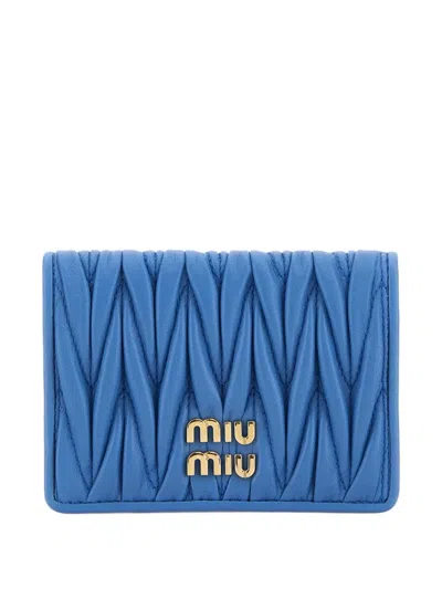 MIU MIU Cerulean Nappa Leather Card Holder In Blue