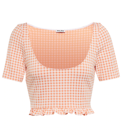 This Miu Miu crop top features a deep scoop neckline and ruffle trim at the hem.