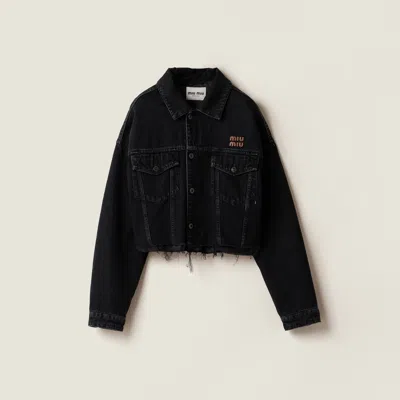 MIU MIU Cropped Jacket With Long Sleeves And Frayed Hem In Black