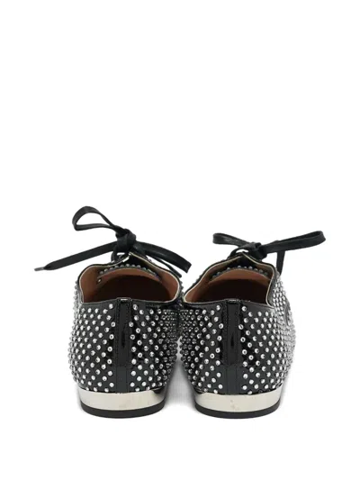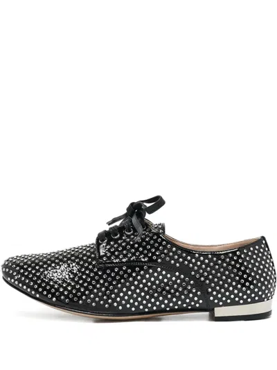 black patent leather crystal embellishments lace-up closure low heel metal heel detail Condition: UNWORN. This item is previously owned but remains unworn and in its original condition. However, it does not come with its original tags.