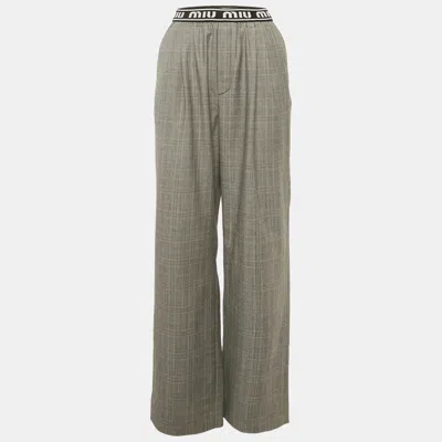 Pre-owned Dark Grey Plaid Wool Straight Leg Pants S In Gray
