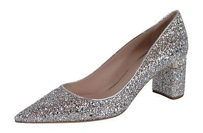 Pre-owned Donna Silver Glitter Crystals Pumps Heels Shoes 38 51500c 3b4x