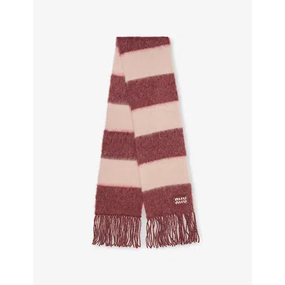 MIU MIU Embroidered Mohair Blend Scarf In Burgundy