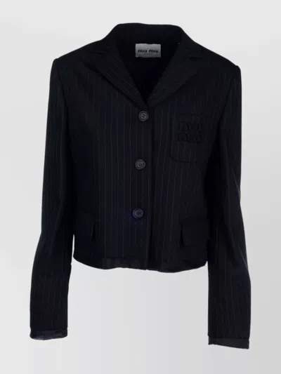 MIU MIU Jackets With Front Pocket And Pinstripe Pattern In Black
