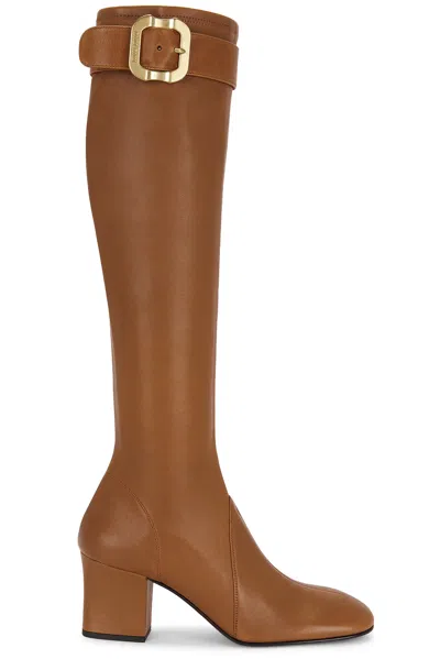 Miu Miu Knee High Boot in Brown Leather upper and lining/rubber sole. Inner zipper closure. Leather insole. Round toe. Leather covered heel. Approx 75 mm / 3 inch heel. MIUF-WZ227. 5W548E. About the designer: Established in 1992 by Miuccia Prada, Miu Miu reflects fashion forward, light-hearted, and provocative women. The language of Miu Miu experiments with contemporary femininity, merging rebelliousness with minimalism in order to evoke a sense of freedom within luxury fashion. As a member of the Prada family, Miu Miu is made for those who aspire to add a flair of the avant-garde to their lifestyle.