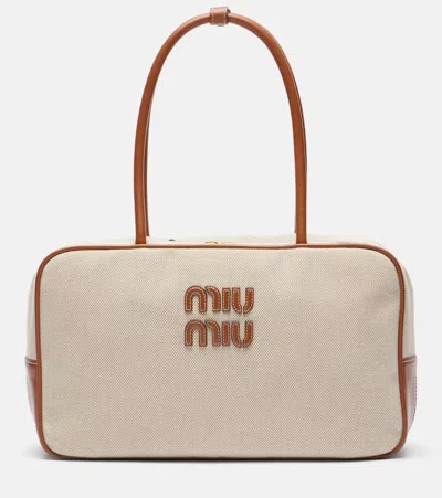 MIU MIU Large Beau Canvas Shoulder Bag In Neutral