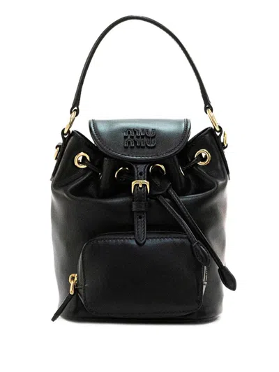 MIU MIU Leather Backpack Top Handle Adjustable Straps In Black