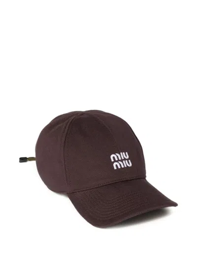 MIU MIU Logo-embroidered Cap In Amaranth/forest Green