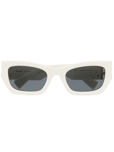 MIU MIU Logo-plaque Rectangular Sunglasses In Weiss