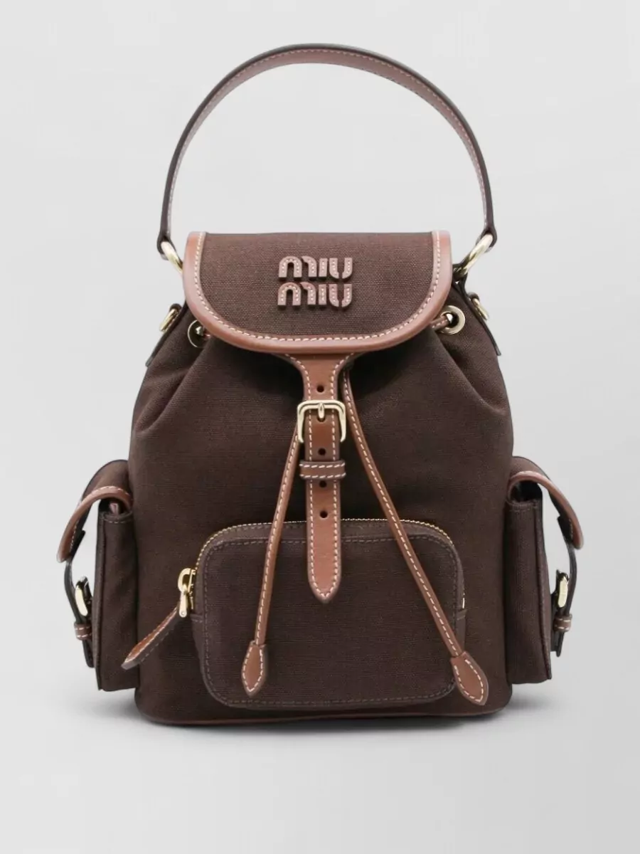MIU MIU Medium Canvas Leather Backpack Top Handle In Brown
