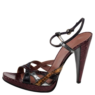 Pre-owned Multicolor Snakeskin Ankle Strap Sandals Size 39.5