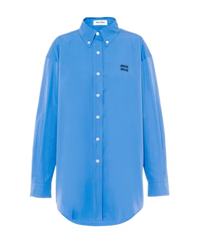 MIU MIU Oversized Poplin Shirt In Blue