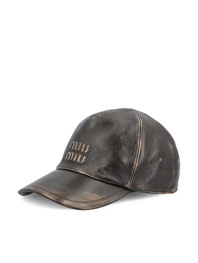 This Miu Miu cap combines luxury and assertive character, with a worn-effect lambskin design that gives it a unique and sought-after look. The soft texture and coffee finish with vintage undertones make it a distinctive accessory, perfect for completing casual-chic or trendy streetwear looks. On the front, the embossed tone-on-tone Miu Miu logo stands out, while on the back, the adjustable closure with golden buckle ensures a customizable and comfortable fit. Made entirely in Italy, it is a piece that combines craftsmanship and contemporary style. - Material: 100% lamb leather - Color: vintage effect coffee - Distinctive details: embossed Miu Miu logo on front - Closure: adjustable strap with gold metal buckle - Made in Italy - Item number: 5HC179AF6PF0201