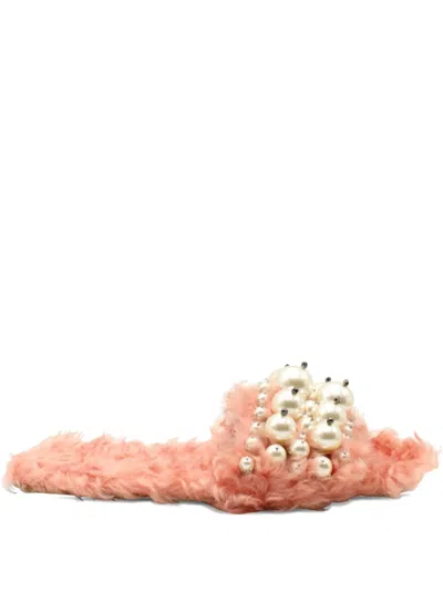 Pre-owned Pearl-embellished Fur Slides In Pink