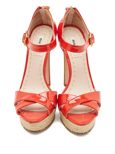 Pre-owned Platform Cross-strap Heeled Sandals In Red