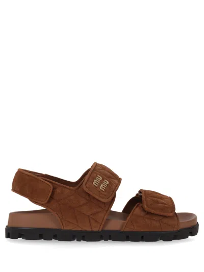 MIU MIU Quilted Open Toe Sandals With Rubber Sole In Brown