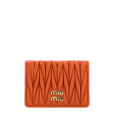 MIU MIU Quilted Rectangular Leather Card Holder In Orange