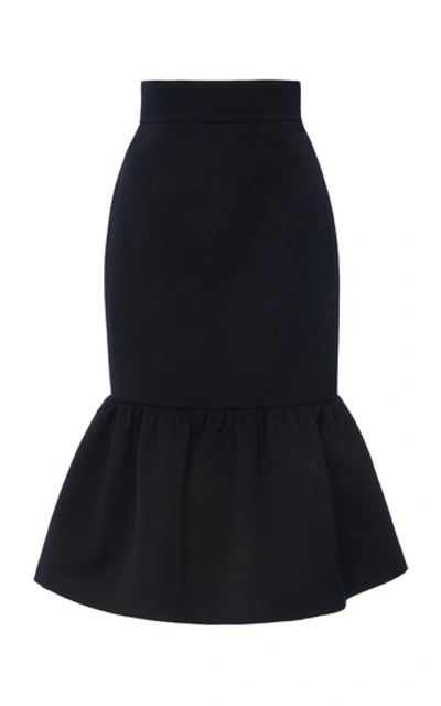 MIU MIU Ruffled Wool Cady Midi Skirt In Navy