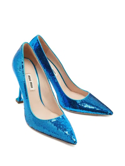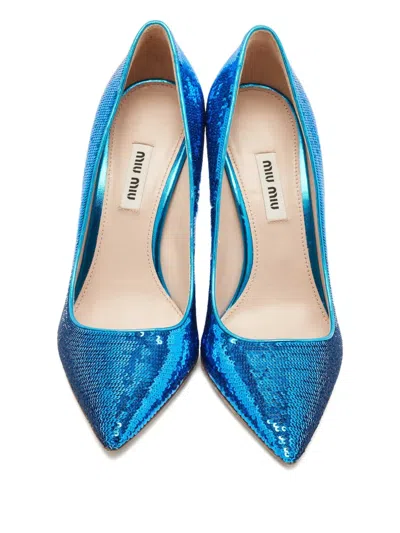 Pre-owned Sequin-embellished Pointed Pumps In Blue