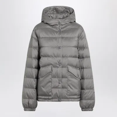 Steel Grey Puffer Jacket In Technical Pongé Fabric In Gray