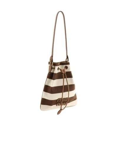 MIU MIU Striped Fabric Drawstring Pouch In Multi