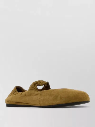 Suede Ballerinas Flat Sole Ruched Detail In Brown