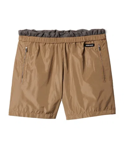 MIU MIU Technical Silk Bermudas In Brown
