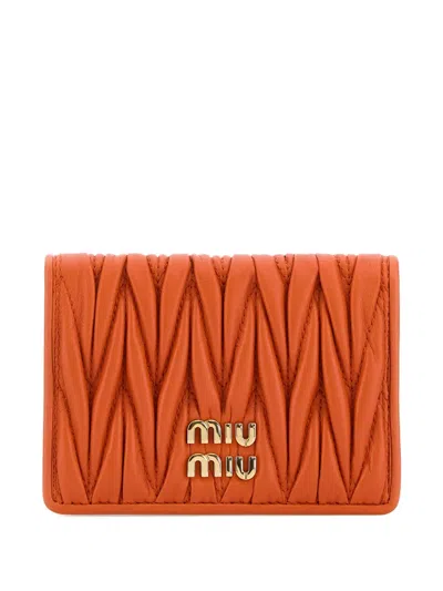 MIU MIU Quilted Rectangular Leather Card Holder In Orange