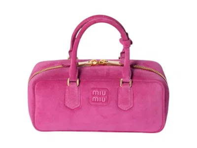 Please Note: This item comes with a dust bag, the box is not required. | Women's Miu Miu Arcadie Suede Bag in Fuschia