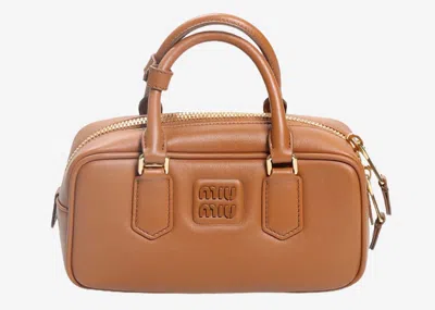 Please Note: This item comes with a dust bag, the box is not required. | Women's Miu Miu Arcadie Top Handle in Cognac