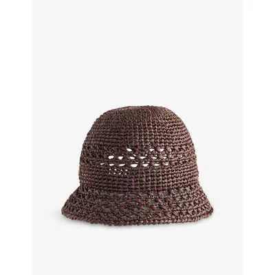 Womens Crochet Embossed-branding Woven Bucket Hat Cacao+naturale In Brown