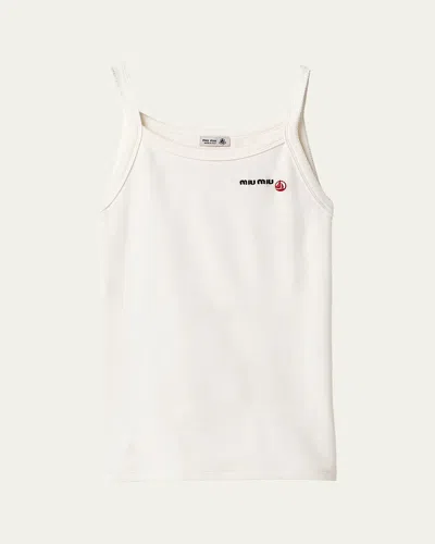 Created in collaboration with Petit Bateau, this Miu Miu soft cotton top is adorned with delicate picot trim and iconic embroidered logos. Approx. 23.23"L from shoulder to hem Scoop neckline Fixed shoulder straps Slim fit Pullover style Cotton/elastane Made in Italy