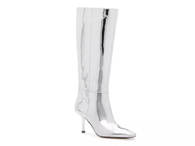 The disco ball will envy your style when you rock the Nole boots from Mix No. 6! This sleek silhouette is crafted with a high-shaft design, a high heel, and an eye-catching silver metallic hue. Click here for Boot Measuring Guide. Click here to shop more wide calf boot styles!