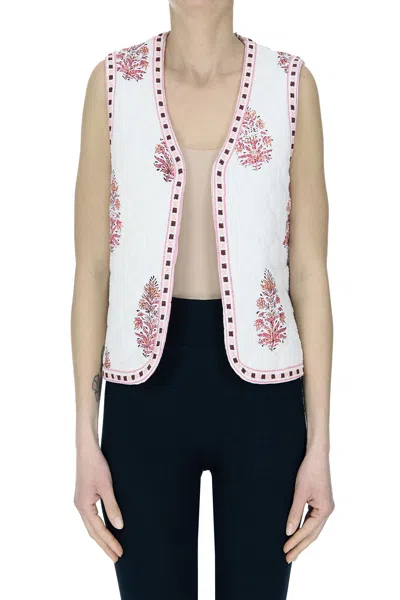 Printed quilted cotton gilet, embroidered trims. Sample size: 36 FR COMPOSITION: 100% Cotton Made in India