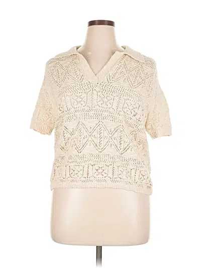 MNG Pullover Sweater, Size: X-Large. Item Details: Ivory, Collared Neckline, Short Sleeve, Women's Tops, 100% Cotton