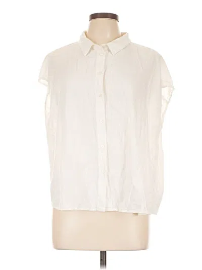 Mod Ref Sleeveless Button Down Shirt, Size: Large. Item Details: Ivory, Collared Neckline, Short Sleeve, Frayed Edges, Women's Tops, Rayon/Linen