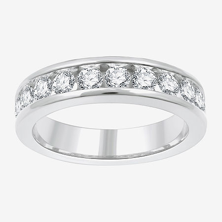 Ring Style: BandsDiamond Clarity: I1Setting: ChannelStone Cut: RoundDiamond Color: H-IMetal Color: WhiteRing Gallery Height: 2.8mmRounded Carat Weight: 1 Ct. T.w.Band Width: 5mmCare: Wipe CleanStone Type: 11 Lab Grown DiamondAuthenticity: Lab Grown DiamondMetal: Sterling SilverCountry of Origin: Imported
