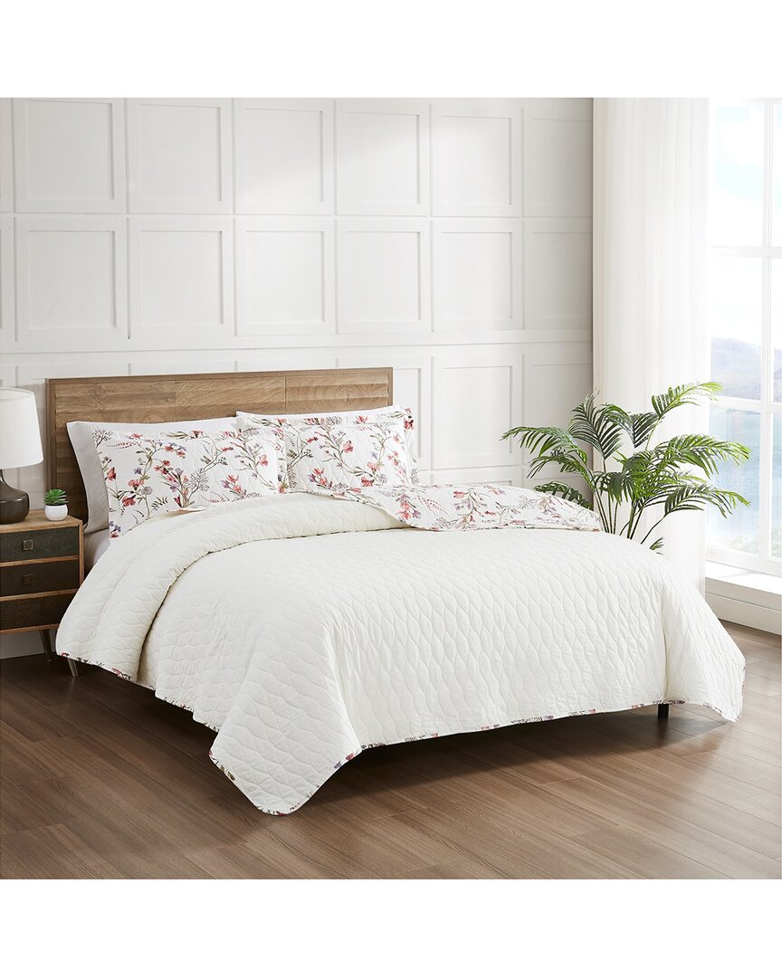 MODERN THREADS Ariana Floral Stripe Quilt Set In White