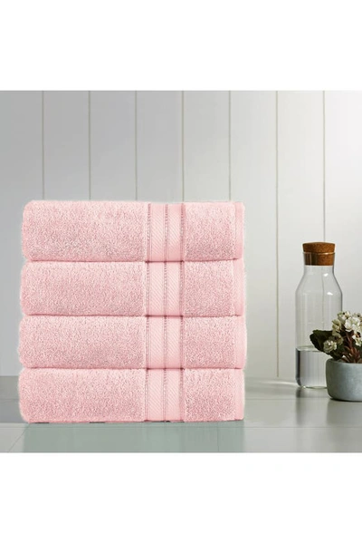 Indulge yourself in spa like luxury with this luxurious towel set. The set is made of cotton known for its softness, absorbency, and durability. Unlike zero twist towels where the cotton yarns are twisted with the a PVA yarn (Plastic fiber), the Spun Loft yarn is twisted without any plastic yarns. These towels make an ideal complement to any bathroom whether you use it to pamper yourself or reserve it for special guests. cotton fibers are valued for their superior length and strength, which also reduces the buildup of pile and lint. Additionally the towels get softer with washing and drying. Oeko-Tex certified, the definitive mark of excellence for products that are healthy for you and healthy for the environment. Set of 4 <br> 30" x 54" 100% cotton Machine wash Imported