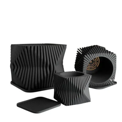 Sizes: Large: Height: 6.5 inches | Width: 9.5 inches | Depth: 9.5 inches | Opening 6 Inches Medium: Height: 4.8 inches | Width: 7 inches | Depth: 7 inches | Opening 4.5 Inches Small: Height: 3.4 inches | Width: 5 inches | Depth: 5 inches | Opening 3 Inches Looking for something custom? Feel free to reach out for personalized sizes or colors. Modernized design The TIDE planter was inspired by our TIDE vase design. It was created to embody the graceful movement of ocean waves, translating that fluidity into a modern, sculptural design. Its twisted silhouette and ribbed texture bring a sense of calm and elegance to any space, serving as a captivating centerpiece for your floral arrangements. Perfectly fitted drip tray saucer included! Made from 98% Plant-Based Materials | BioPlastic & Wood Fibers Wipe with damp cloth