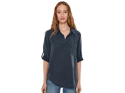 Mod-o-doc Roll Tab, Patch Pocket, Tunic - Women's Clothing : Vibrant Navy : Add a touch of sophistication and style to your look wearing the Mod-o-doc Roll Tab, Patch Pocket, Tunic Top. The pull-on style top features a collared neck, three-fourth sleeves with rolled tabs, a patch pocket at the left chest, and a curved hem. ; Relaxed fit. ; 100% Tencel. ; Machine washable. ; Imported. | Mod-o-doc Roll Tab, Patch Pocket, Tunic Women's Clothing Vibrant Navy : XS (US 0-2), Tencel