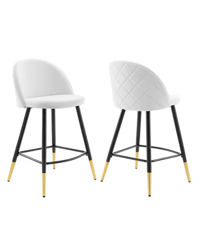 MODWAY Cordial Performance Velvet Counter Stools, Set Of 2 In White