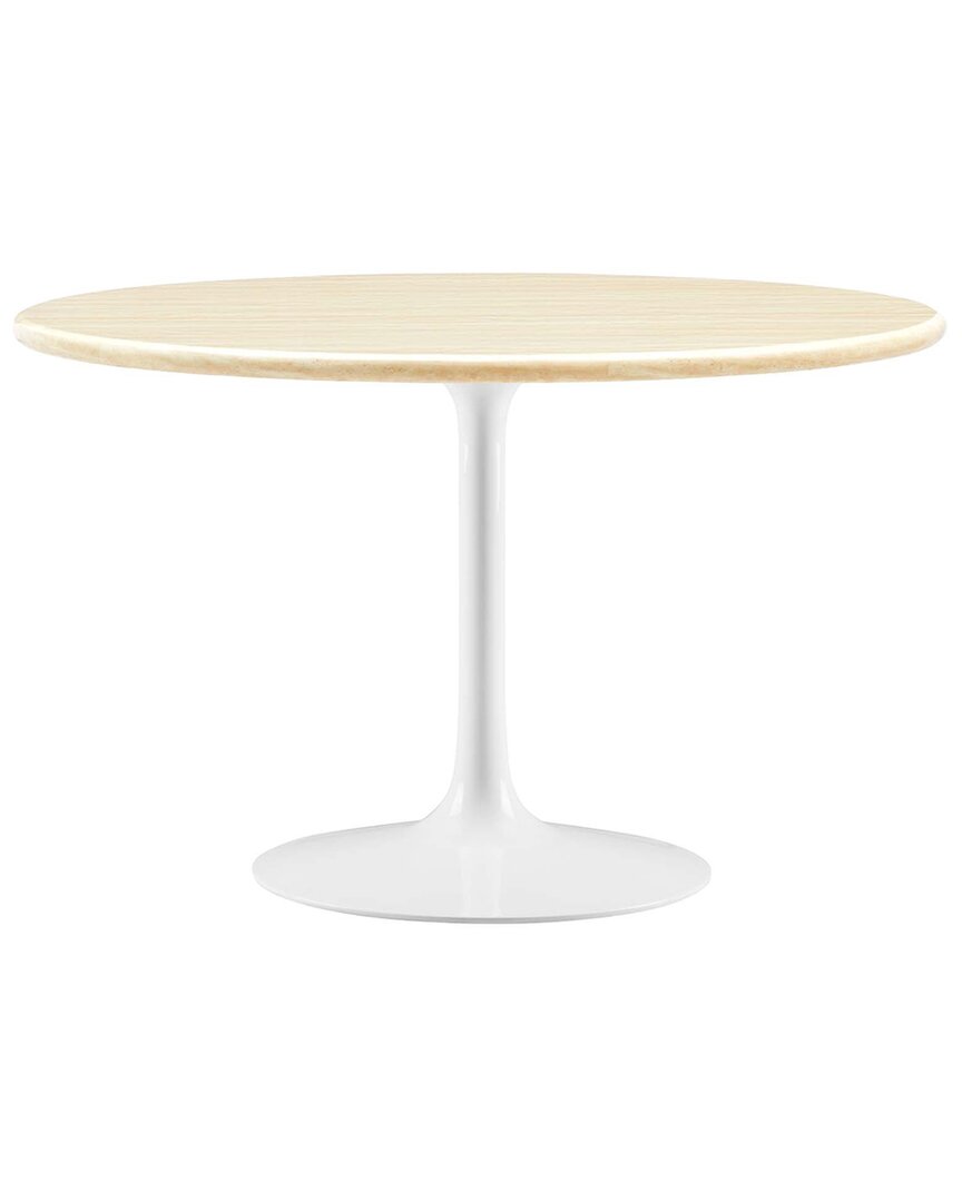 Lippa 48 Round Artificial Travertine Dining Table In White