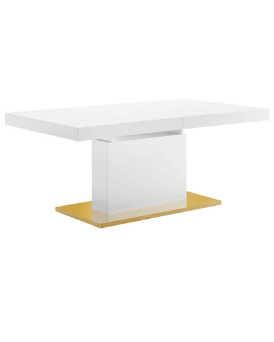 About The Brand: Furniture For All Your Living Areas, Indoor And Out. Color/Finish: White Gold Reimagine Your Dining Decor With The Vector Expandable Dining Table. Tailored For All Occasions From Intimate Dining To Festive Gatherings, The Organic Wood Grain Surface On This Dining Table Is Perfect For Haute Cuisine And Home Cooking. Featuring Durable Fiberboard Construction, Wood Veneer, A Gold Stainless Steel Base, A Butterfly Leaf With A Lock That Collapses Inside The Distinguished Columnal Base With Ease, And Non-Marking Foot Pads To Help Protect Your Flooring, Vector Comfortably Seats Up To Eight People And Extends From 71 To 94. 5 Inches. Overall Product Dimensions: 71 - 94.5In Long X 39.5In Wide X 30In High Kd Structure1, P2/Epa Mdf With Blk Or Whi Color(High Gloss Lacquer ). 2, P2/Epa Mdf With Veneer, Base: # 201 Stainless Steel Plated With Gold, Bottom With Black Plastic Adjusting Pad, Middle Panel Can Be Folded At The Bottom, Table Length Extendable Wipe With A Clean Damp Cloth. Imported Assembly Required This Item Will Be Delivered Via Freight Delivery To A Residential Address. (Deliverable Addresses Include Homes, Home-Based Businesses, College Dormitories, Apartments, And Townhouses. Deliveries Will Be Made To The Building's Ground Floor Entrance Or Garage Entrance Only. Within Two Weeks Of Receiving Your Shipping Confirmation Email, You Will Receive A Phone Call From The Delivery Service To Set Up An Appointment For Delivery (Please Confirm The Phone Number Listed With Your Billing Address Before You Place Your Order). Please Note: Appointments Are Contingent With The Business Hours And Availability Of The Delivery Service. You Must Be Present To Sign For The Item At The Arranged Time. A Confirmation Number And Further Details About The Delivery Service Will Be Sent Once Your Order Has Been Shipped.
